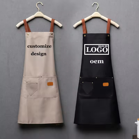 Delantal de cocina de lona de poliéster impermeable con logotipo personalizado para mujeres y hombres con bolsillos restaurante tienda camarero trabajo delantales de cocina
