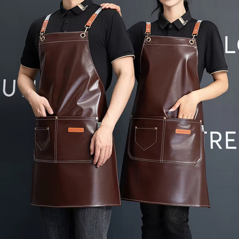 Delantal de cocina de cuero impermeable de peluquero profesional personalizable logotipo personalizado Pu delantal de peluquería de trabajo para hombre y mujer